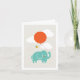 Ilustracion vectorial de un pequeño elefante azul agarrándose a un gran globo rojo con una burbuja en las cercanías. | Diseño de Shelby Allison