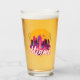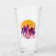 Estilo retro "Miami" diseño de texto ilustracion al atardecer con sol y rascacielos decoración en rosa, amarillo y púrpura