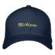 Muestra tu apoyo con esta tapa en la marina con texto bordado amarillo.