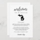 Share a welcome message for your Michigan wedding guests as well as an itinerary or schedule of the weekend's events. Front features your welcome message with a silhouette map of the state of Michigan with a heart inside. Personalize the reverse side with your wedding day or wedding weekend itinerary. Perfect for including in hotel welcome bags or delivering to your guests' rooms.