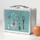 Mi original ilustracion vectorial de una escena inspirada en el siglo medio: En algún momento después de la medianoche, los humanos vuelven a casa para encontrar a sus gatos adultos ayudándose a sí mismos al tazón de pescado, mientras los gatitos tienen sus ojos en el pájaro mascota solitario. En tonos azul cadete, negro, blanco roto, rosa polvoriento y un toque de verde.