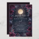 Anuncie a su próximo boda con estilo con esta impresionante tarjeta de ahorro "Midnight Garden Moon". Con una brillante luna llena en el centro, rodeada de profundas flores borgoñas y un follaje oscuro, este diseño evoca el misterio y el romanticismo de un jardín iluminado por la luna. Perfecto para bodas con temas celestes, cósmicos o nocturnos, esta tarjeta de ahorro de la fecha marca el tono para una encantadora y mágica celebración de bodas. Personalice los detalles de su boda para crear una invitación única e inolvidable para sus huéspedes.