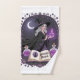 An enchanting digital illustration featuring a young witch with silver hair and a floral-trimmed hat. She is shown brewing magic, holding a glowing purple potion bottle while an open spellbook titled "Midnight Magick" sits before her. The scene is set within a decorative purple floral frame under a crescent moon, creating a whimsical and mystical atmosphere. With its clean linework and vibrant purple and black color palette, this artwork is perfect for fantasy lovers.