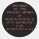 Miembro de los pegatinas de la Orden Secreta. ¡Compra los pegatinas oficiales de la Orden Secreta de Científicos Locos, Genio Mal y Supervillanos aquí! A disposición de todos los Miembros de Orden Secreta, ¡estos pegatinas son perfectos para pegarse en todos sus instrumentos del mal! ¡Los pegatinas de todas las mentes retorcidas codiciarán con la frase "Miembro de la Orden Secreta de los Científicos Locos, Genio Malvado y Supervillanos" en letras rojas y siniestras, estampadas en un fondo negro! Malvadas y geniales sábanas pegatinas hechas de papel resistente a los arañazos que es fácil de pelar y pegar en cualquier parte, ¡esos pegatinas oficiales de la Orden Secreta de Científicos Locos, Genio Maligno y Supervillanos seguramente complacerán hasta a los intelectuales más particulares y escogidos del mal! Compra tu propio y práctico Miembro del Orden Secreto pegatinas de la Orden Secreta de Científicos Locos, Genio Maligno y Supervillanos hoy y asegúrate de meterlos en todos tus dispositivos de dominación mundial y planes secretos mientras intentas la conquista del mundo. ¿Buscando más regalos para el discerniente genio incomprendido y sería el gobernante mundial? Después asegúrese de ver el resto de los malvados artículos de regalo de The Secret Order, desde camisetas a tazas, cadenas de claves a tarjetas de visita y más de los que ninguna guarida secreta debería estar libre. ¡La Orden Secreta de los Científicos Locos, Genio Maligno y Supervillanos, que les trae dominación mundial a través de la ciencia del mal! ¡Mwahahahahaha! Este mensaje está respaldado por el Miembro de la Orden Secreta #1.