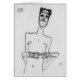 "Mime van Osen mit aneinandergelegten Fingerspitzen" Dibujo en tiza negra de una mima muy delgada, inclinado a la derecha con largos latigazos, hombros bonitos y yemas de dedos yuxtapuestos. Dibujo del pintor austriaco Egon Schiele (1890-1918), de su serie Mime van Osen, 1910.