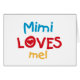 Mimi me ama camisetas, tarjetas, pegatinas, bolsas de pantalones y mucho más con colorido rojo, amarillo y azul texto y diseño cardíaco. ¡Este Mimi me ama ropa y artículos de regalo me harán sonreír!