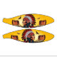 Retrato nativo americano de jefe que mira lejos en un desértico paisaje salvaje sobre fondo de atardecer, Ilustracion vector original Copyright BluedarkArt ElChameleonArt