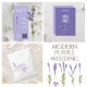 Tarjeta de gabinete de detalles de Boda mini Lavender perteneciente a la misma colección para personalizar con su propio código QR y detalles de boda.