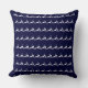 parte de la decoración de temática oceánica Diseño de Sandy Closs MED STRIPE DOLPHINS blancos sobre almohadas azul marino por un lado y banda marina y blanca por el otro lado.
