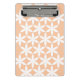 Flor blanca sobre melocotón, flores geométricas sutiles y círculos ocultos en un patrón