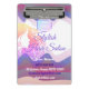 El Portapapeles de negocios personalizado presenta colores de onda de arcoiris. ¡Hora de organizarse! Planifique sus días con estilo con la ayuda de este Portapapeles de personalizable. Personalice este portapapeles (de trabajo) (de oficina) con su nombre comercial (nombre de tienda), detalles y logotipo o elimine el texto, la imagen y el logotipo si no fuera necesario.