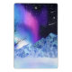 Ya sea que estés haciendo senderismo por las montañas de Alaska para ver las auroras boreales, acampando cerca de un lago helado en Islandia, o quedándote en casa deseando ver las auroras en persona, esta pintura digital del mágico show de luces seguro que será un paro.