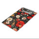 Organizar con estilo este mini portapapeles de moda con un ilustracion floral vibrante, dramático, rojo y crema sobre un fondo oscuro y una placa con nombre en la parte de atrás, ¡para que la persona a la que te enfrentas sepa quién eres!