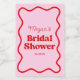 ¡Estas son etiquetas para botellas de vino miniatura para una fiesta de ducha nupcial con borde ondulado retro rojo rosa!
