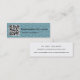 Tarjetas de visita micro azules del consultor de moda del código del qr del damasco las pequeñas mini son grandes para los profesionales independientes de la pequeña empresa o el uso personal. Viene con una caja libre del dispensador del pulgar para la promoción rápida del negocio en camino. Cree su CÓDIGO ganado de QR gratis en http://qrcode.kaywa.com y substituya el código del qr de la muestra por sus el propio.