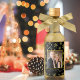 Estas botellas de vino en miniatura son perfectas como favoritas de fiesta en la reunión de tus Navidades, o para cualquier ocasión festiva de invierno. El diseño muestra tu foto rodeada por una abundancia de copos de nieve dorados sobre un fondo negro. Hay espacio para un saludo corto, tu nombre y el contenido de la botella. ¡La forma perfecta de desear a sus amigos y familiares unas vacaciones felices!