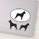 Pegatina de corte Oval y die. Estas calcomanías duraderas de silueta de perro son impermeables y resistentes a los arañazos. Pegue estos pegatinas de vinilo de Pinscher en miniatura a su portátil, teléfono, portátil, botella de agua, casco, skateboard o incluso a su auto. Visite el mundo doodle de Jenn para ver más calcomanías de vinilo de raza de perro y regalos de los amantes de MinPin.