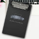 Cepillo de moda Aplastar Negro Faux Plata Gris Elegante Monograma Mini Portapapeles. Tipografía de monograma de escritura elegante de fácil personalizar, combinada con diseño de fuente serif clásico. ¡Navidades perfectos o idea de regalo monogramada de cumpleaños!