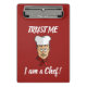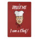 Cabeza del chef con gorra, pañuelo rojo y texto personalizado.