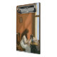 Este diseño presenta un cuadro del artista realista estadounidense Edward Hopper (1882-1967). Es una representación tranquila pero evocadora de la soledad y la introspección, temas que a menudo son centrales en el trabajo de Hopper. La pintura captura a una joven, la chica titular, sentada en una máquina de coser, absorbida en su tarea. El estilo distintivo de Hopper, caracterizado por su uso de la luz, la sombra y las escenas cotidianas, es evidente en este trabajo temprano. El lugar está instalado en una sala sobria, iluminada por el sol. El chica se encuentra cerca de una gran ventana. La luz que penetra por la ventana es un elemento clave del cuadro, con un resplandor cálido sobre la habitación que ilumina a la figura del chica. Esta luz crea un fuerte contraste con el interior más oscuro, resaltando el aislamiento de la escena. La cara de la chica está parcialmente oscurecida, pues se centra intensamente en su costura, su expresión ilegible, lo que aumenta el sentido de introspección y soledad. Lleva un largo vestido blanco y tiene el pelo castaño. La máquina de coser, una herramienta esencial de la vida doméstica en ese momento, se presenta con detalles precisos, simbolizando las tareas rutinarias y a menudo monótonas de la vida cotidiana. La postura de la chica, un poco envuelta en su trabajo, sugiere concentración pero también insinúa la naturaleza silenciosa y repetitiva de su actividad. La ventana, un motivo recurrente en la obra de Hopper, sirve como conexión entre el mundo interior del chica y el exterior. La obra original fue pintada por Edward Hopper en 1921.
