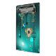 El oro, las llaves antiguas con engranajes y diales cuelgan de las cadenas de oro sobre un fondo verde luminoso.