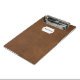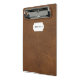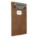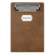 Mini Portapapeles de cuero marrón.