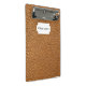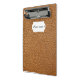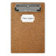 Mini portapapeles de cuero marrón.