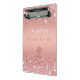 Agrega un toque de glamour a la planificación de tu fiesta de despedida de soltera con esta Tabla de Apuntes Miniatura de Despedida de Soltera Elegante Rosa Dorado Luxe con Brillo. Con un fondo degradado de rosa dorado chic, acentos de purpurina rosa brillante y una elegante silueta de novia, esta tabla está personalizada con el primer nombre de la novia y la frase "Novia a Punto de Casarse" en letra cursiva moderna.