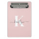 Minicarpeta De Pinza Elegante Monograma Rubor con guión gris rosado