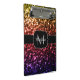 Personaliza con tu nombre inicial. Hermosos arcoiris amarillos de color púrpura y brillantes chispas. ¡Foto de destellos amarillos, rojos, morados y coloridos que no son purpurinas reales!