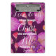 Un bello portapapeles morado con flores de hibisco. En el fondo hay tonos morados y rojos. El versículo de la Biblia escrito en él es de Filipinas 4:13, puedo hacer todas las cosas a través de Cristo que me da fuerza en escritura blanca. Este versículo sirve como recordatorio de que no importa lo que te enfrentes, Jesús está contigo y te dará fuerza. ¡También es una gran manera de expresar tu fe! Encontrará este diseño en numerosos estilos de estuche y otros productos - vea nuestra tienda para la colección completa. ¡Empieza tu año intencionalmente con este planificador cristiano! ¡Un regalo cristiano perfecto para las mujeres!