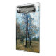 An autumn art design of a fir tree and a person enjoying some peace and quiet.
