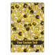 Fondo amarillo sellante con teclas y texto personalizado.