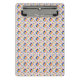 Front and back view of a clipboard with a vibrant, multicolored geometric pattern featuring circles and diamonds on a white background.