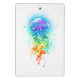 Grandes medusas de azulejo brillantes, de dibujos artísticos, con largos tentáculos en blanco, pintadas con fondo multicolor de acuarela. Mariscas arcoiris.