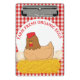 Este Pollo Cutáneo Sobre Huevos con fondo rojo y blanco a cuadros es una estupenda Placa Clip.
