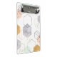Hex Scatter I de Gabrielle McClure. Hexagones de varias formas y diseños esparcidos por un fondo blanco.