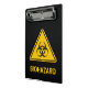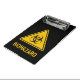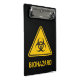 Signo de advertencia del triángulo de riesgo biológico. Texto personalizado. Fondo de patrón sin inconvenientes en la parte posterior.