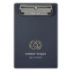 mini portapapeles personalizado de moda para su spa, salud y bienestar holístico, estudio de yoga o negocio de masajes terapéuticos, presenta dos líneas de texto personalizado con letras blancas clásicas, sobre un rico fondo azul marino adornado con un falso logo de flor de loto de Relieve metalizado dorado. La silueta de una persona meditadora se ha incorporado sutilmente a este diseño moderno y elegante, perfecto para la marca de su negocio de bienestar. Personalice su nombre o nombre comercial, o su elección de texto personalizado. El diseño se repite al revés. Tenga en cuenta que este portapapeles es un tamaño pequeño; versión completa también disponible en nuestra colección de logotipos Navy & Gold Lotus.