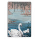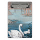 Este pequeño portapapeles tiene una imagen vintage de un hermoso cisne blanco madre nadando en un lago azul con su bebé cisne blanco.