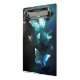 Mariposas brillantes nocturnas de menta sobre fondo abstracto negro.