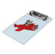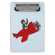 Portapapeles con diseño con un ilustracion de un pingüino volando un plano rojo; ilustrado por Radka Kavalcova / MaxiHarmony