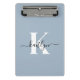 Este sencillo y elegante portapapeles azul polvoriento 9 x 6 con tu nombre en un tipo de letra de guión moderno en negro y tu primera inicial en un tipo de letra de tapa moderna en blanco es perfecto para ti. Es de diseño y a la vez muy clásico. Será útil en tantas situaciones. Perfecto para el trabajo, el hogar, la escuela.
