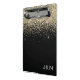 Portapapeles con monograma de nombre de metal cepillado con brillo negro y dorado. Este es el regalo perfecto para cumpleaños número 16, boda, despedida de soltera, aniversario, baby shower o fiesta de soltera para alguien que ama el glamour de lujo y los estilos chic.