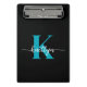 Este sencillo y elegante portapapeles negro 9 x 6 con tu nombre en un tipo de letra de guión moderno en blanco y tu primera inicial en un tipo de letra de tope moderno en verde azulado es perfecto para ti. Es de diseño y a la vez muy clásico. Será útil en tantas situaciones. Perfecto para el trabajo, el hogar, la escuela.