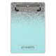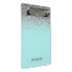 Minicarpeta De Pinza Nombre de monograma azul turquesa plateado brillan