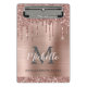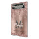 El moderno purpurina de oro, de rosa jovial, desliza un nombre personalizado y un mini portapapeles monocromático. Este diseño presenta detalles brillantes de purpurina de color rosa rosa rosa rosa negro sobre fondo metalizado color rosa falso cepillado con plantilla de texto inicial y de nombre monograma. Perfecto regalo personalizado para volver a la escuela, trabajo profesional, oficina en casa. Tenga en cuenta que este diseño es un efecto fotográfico impreso sin ningún purpurina real.