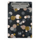 Un patrón de puntos de confeti aleatorios en una paleta de melocotón pastel, marrón arce y gris, con purpurina dorado sobre un fondo oscuro. Personaliza con una inicial.