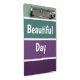 Un patrón de rayas horizontales verde y violeta y el texto: Día hermoso. Puede hacer clic en personalizar y editar el texto. Escribe dos palabras en una línea.