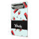 Add your name on this red wine bottles and glasses on blue background pattern design.